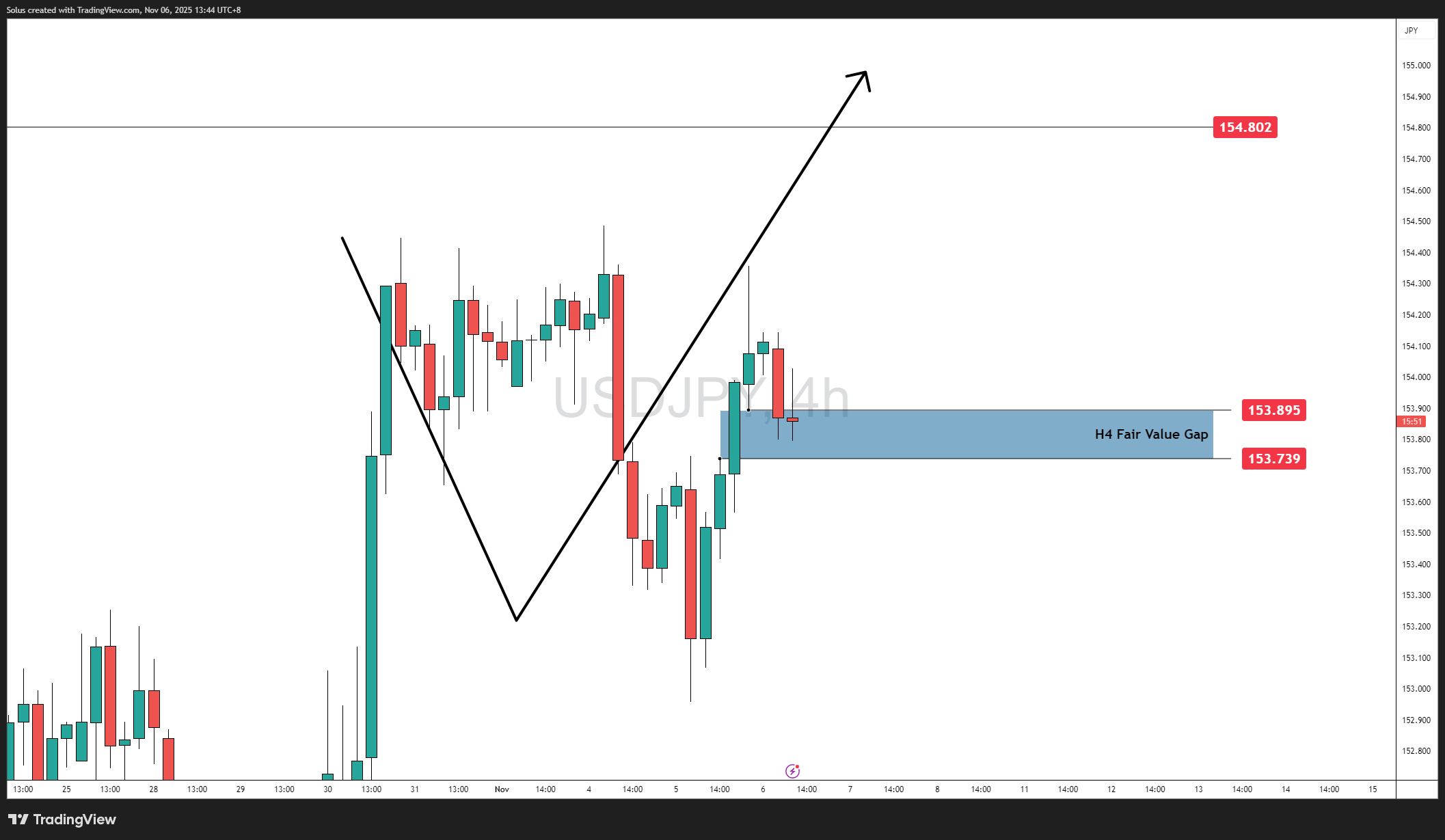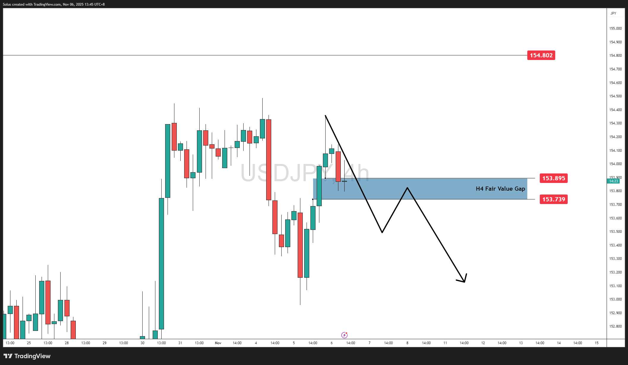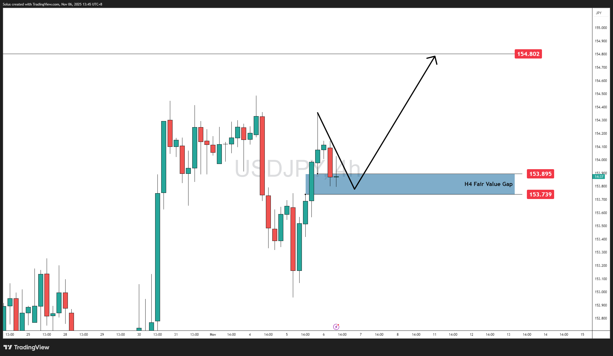 Tăng giá | 153,739–153,895 (H4 FVG) | 154,80 → 155,30 | Dưới 153,30 |