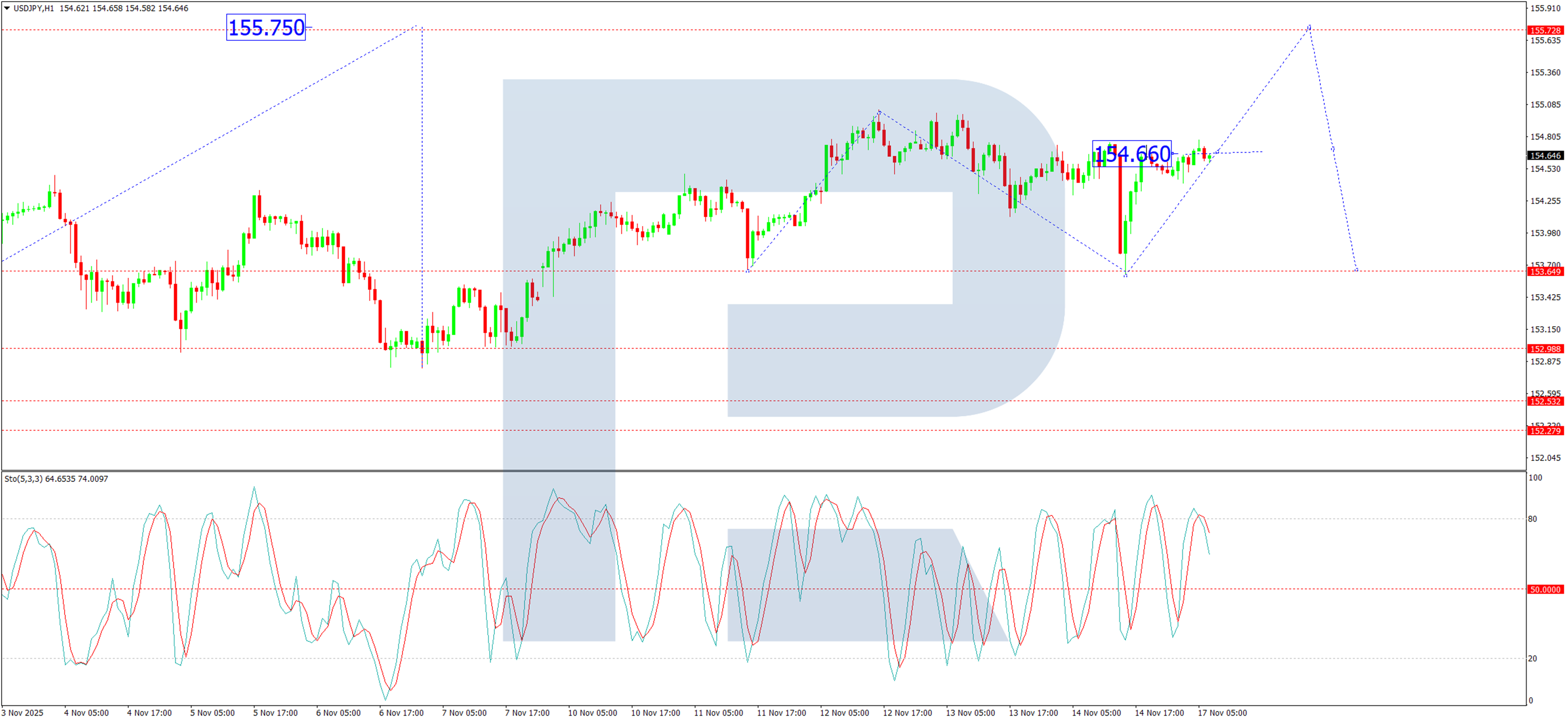 Trên biểu đồ H1, cặp tiền tệ này đã đạt mức cao cục bộ tại 155,00 và hoàn thành cấu trúc điều chỉnh xuống 153,63. Một xung lực tăng trưởng mới lên 154,66 đã được hoàn thành, hình thành một vùng tích lũy nhỏ gọn mới. Dự kiến giá sẽ bứt phá khỏi vùng này, mở đường cho một đợt tăng giá hướng tới mục tiêu tối thiểu 155,75. Chỉ báo dao động Stochastic Oscillator ủng hộ triển vọng này . Đường tín hiệu của nó đang nằm trên 50 và tăng mạnh lên 80, phản ánh đà tăng ngắn hạn mạnh mẽ.
