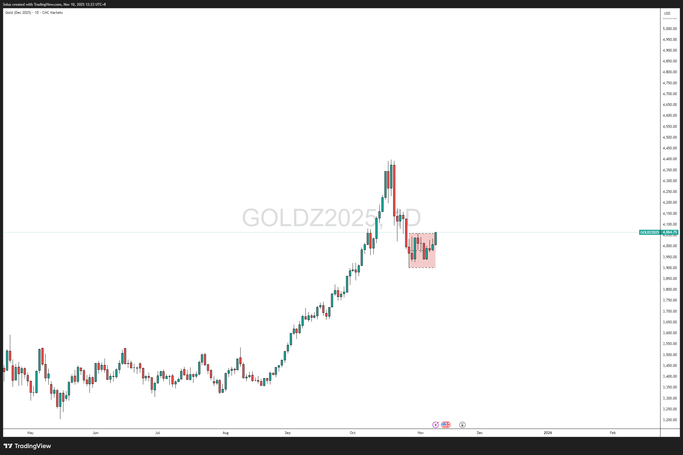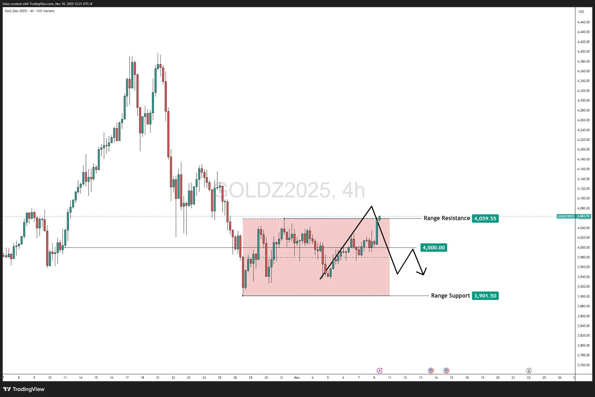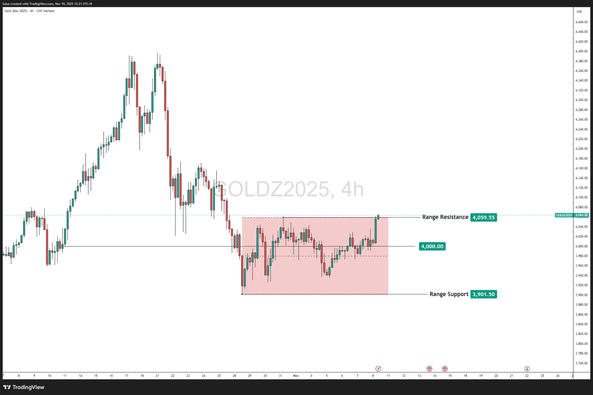 Với mức đỉnh ở mức 4.059,55 đô la đã bị phá vỡ, mức 4.000 đô la trở thành điểm xoay quyết định — đóng vai trò là nhu cầu mới và là tuyến phòng thủ chính cho sự tiếp tục tăng giá.