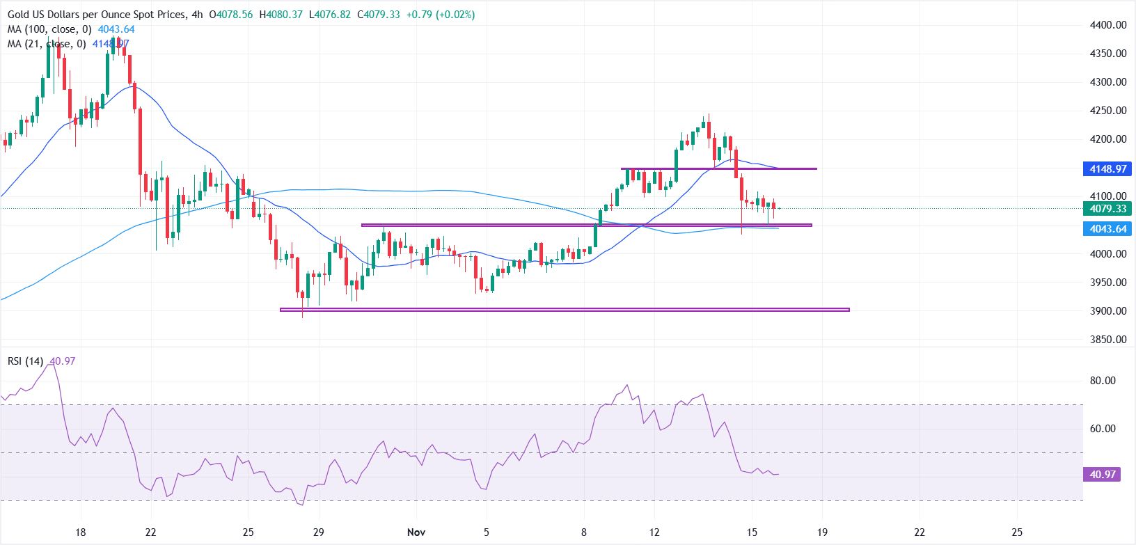 Nếu giá vàng giảm rõ ràng xuống dưới mức 4.040-4.050 đô la, giá vàng sẽ bị đẩy trở lại phạm vi 4.050-3.900 đô la trước đây, mở ra cánh cửa cho đợt thoái lui sâu hơn về mức 3.900 đô la, đặc biệt là nếu ngưỡng tâm lý 4.000 đô la không giữ được.