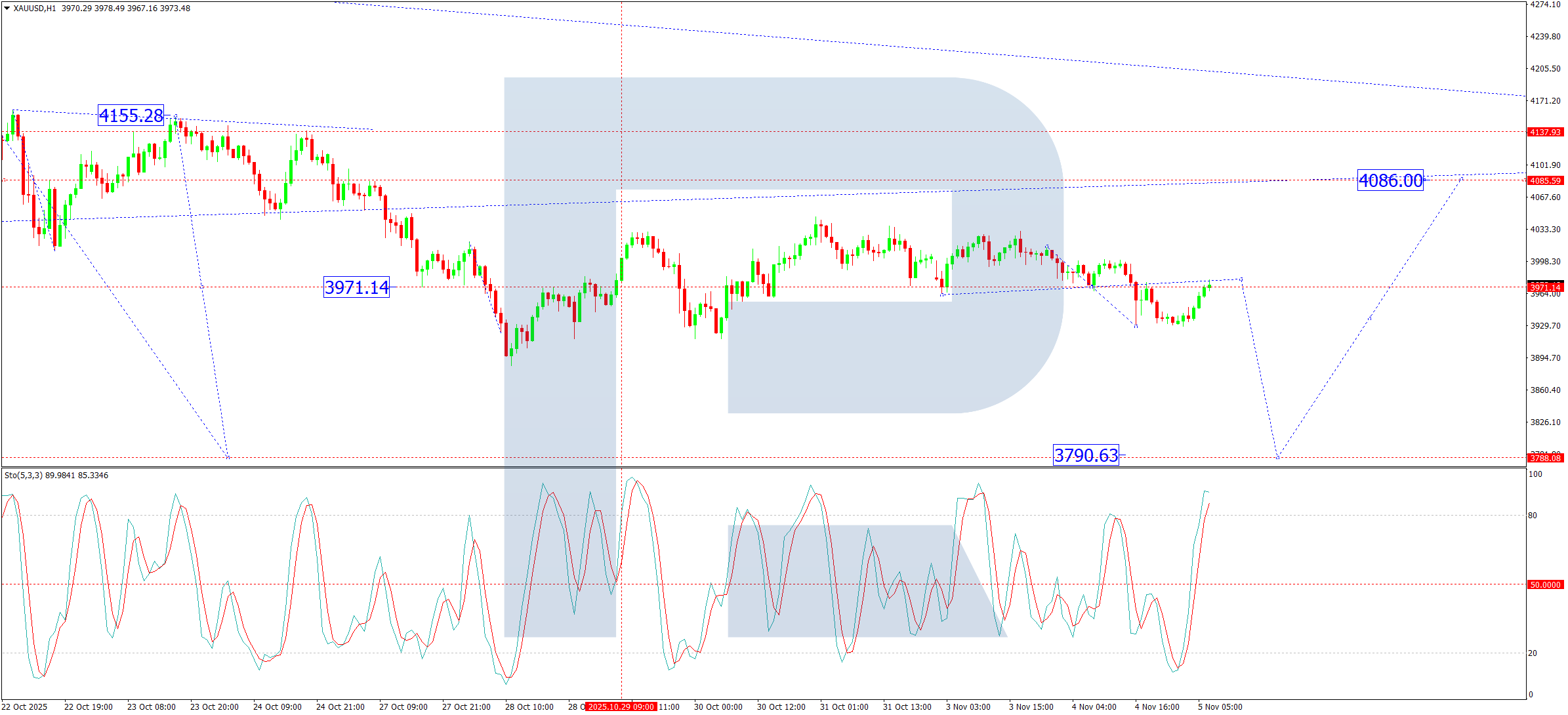 Trên biểu đồ H1, thị trường đang củng cố quanh mức 3.971 USD. Việc phá vỡ dưới mức này có thể kích hoạt một đợt giảm tiếp theo về 3.790 USD. Chỉ báo dao động Stochastic cũng phù hợp với triển vọng này, khi đường tín hiệu của nó dao động trên mức 80 và dường như sắp đảo chiều xuống mức 20, cho thấy áp lực bán đang gia tăng.