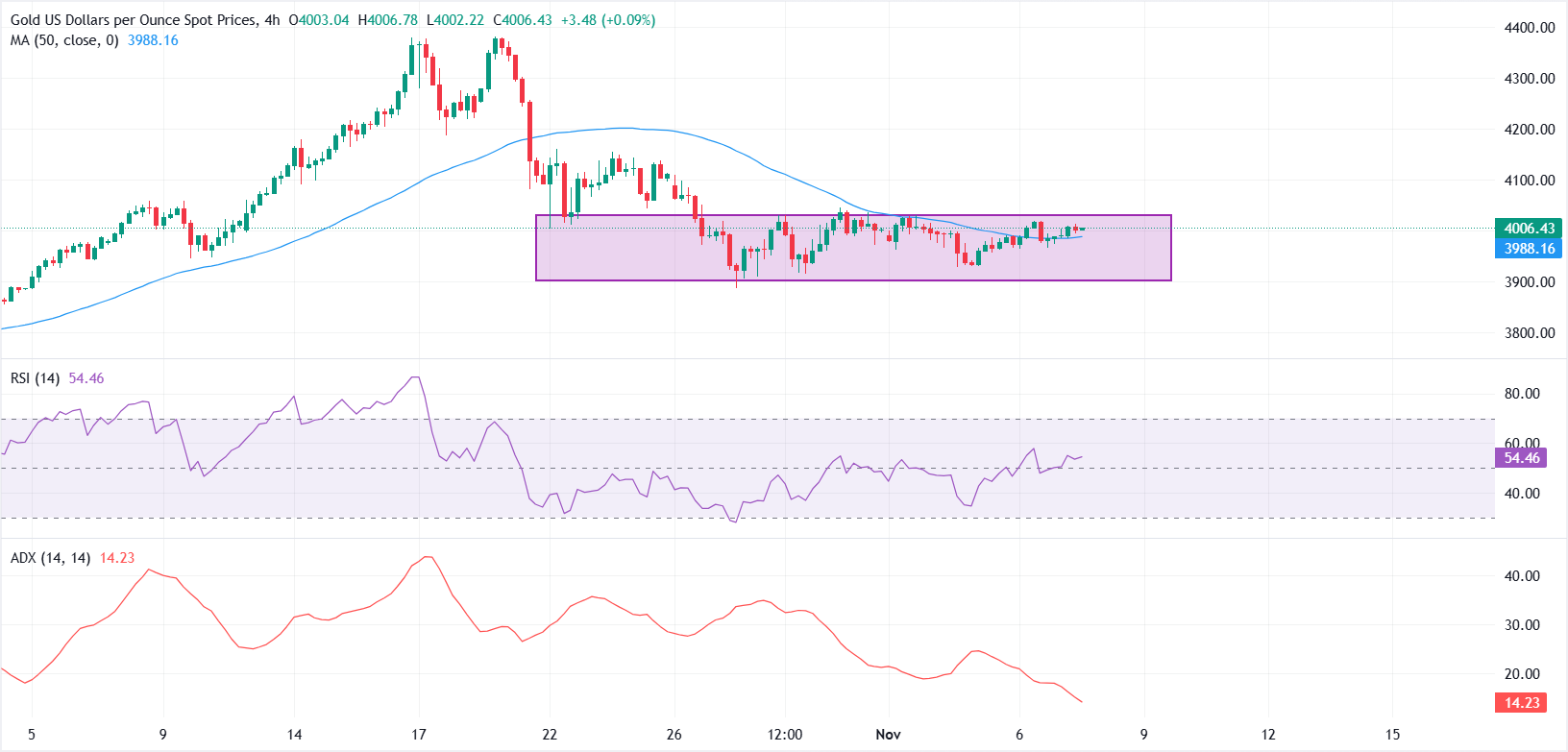 Phân tích kỹ thuật: XAU/USD dao động quanh mức 4.000 đô la với động lực yếu