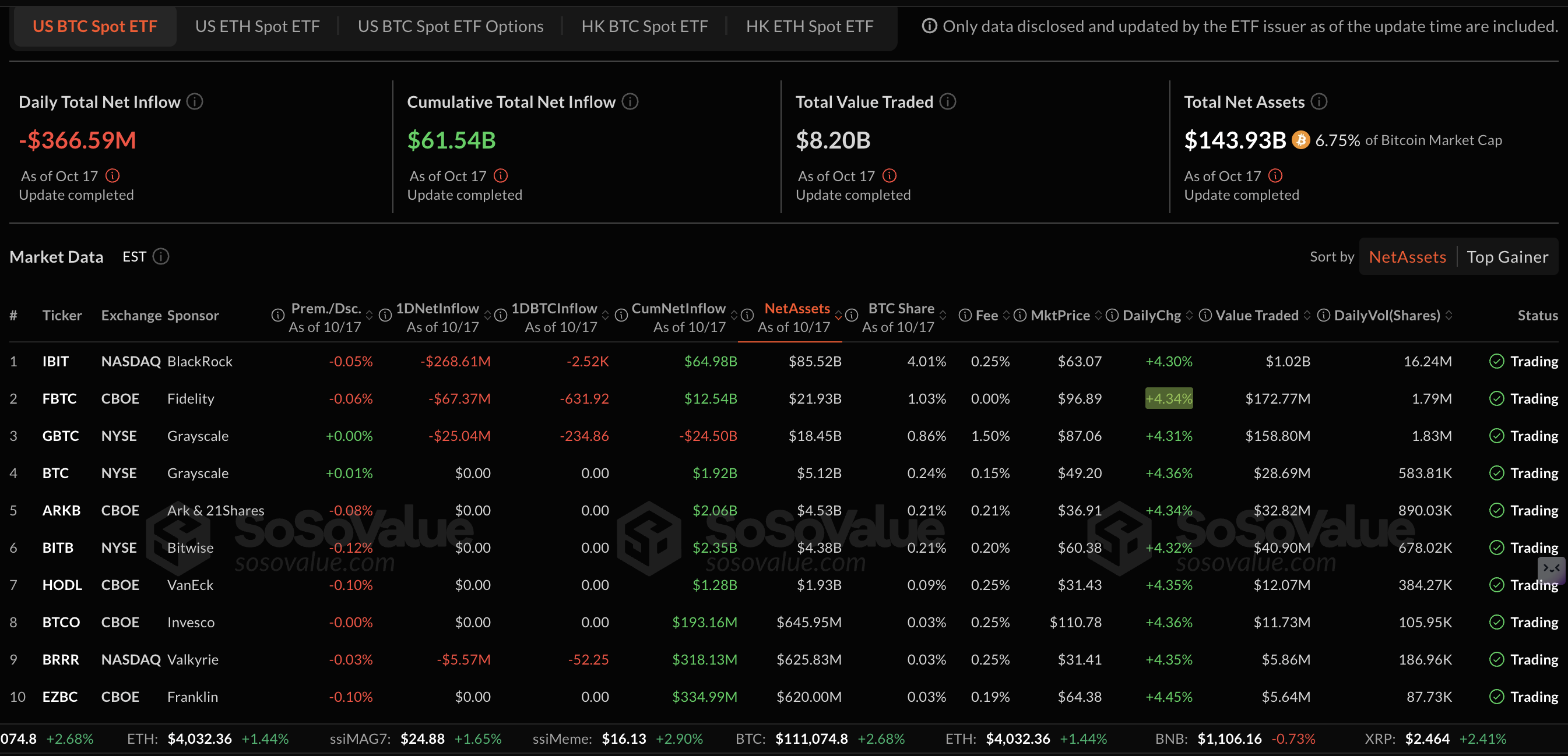 Quỹ giao dịch trao đổi (ETF) Bitcoin giao ngay, cho phép các nhà đầu tư tiếp cận trực tiếp với BTC trên các sàn giao dịch chứng khoán , đã thu hút tổng cộng 61,54 tỷ đô la kể từ khi được chấp thuận vào tháng 1 năm 2024. Theo SoSoValue, tổng tài sản ròng trung bình là 143,93 tỷ đô la tại thời điểm viết bài, nhấn mạnh sự quan tâm ngày càng tăng đối với loại tài sản này.