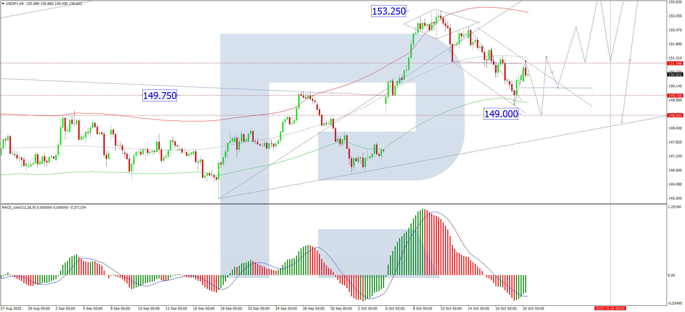 Trên biểu đồ H4, cặp USD/JPY đã hình thành một vùng tích lũy quanh mức 151,10. Sau một đợt bứt phá xuống, cặp tiền này đã thành công chạm đến mục tiêu ban đầu là 149,38. Thị trường sau đó đã hoàn thành việc kiểm tra lại mức 151,10 từ bên dưới. Kịch bản trước mắt nghiêng về một đợt điều chỉnh tiếp theo hướng đến 149,00. Sau đợt giảm này, chúng tôi dự đoán sẽ có một làn sóng tăng trưởng mới, với mục tiêu ban đầu là 151,50 và triển vọng dài hạn là tiếp tục xu hướng tăng rộng hơn hướng đến 154,10. Triển vọng này về mặt kỹ thuật được xác nhận bởi chỉ báo MACD. Đường tín hiệu của nó vẫn nằm dưới mức 0 và đang hướng xuống, phản ánh đà giảm kéo dài với tiềm năng đảo chiều tiếp theo.