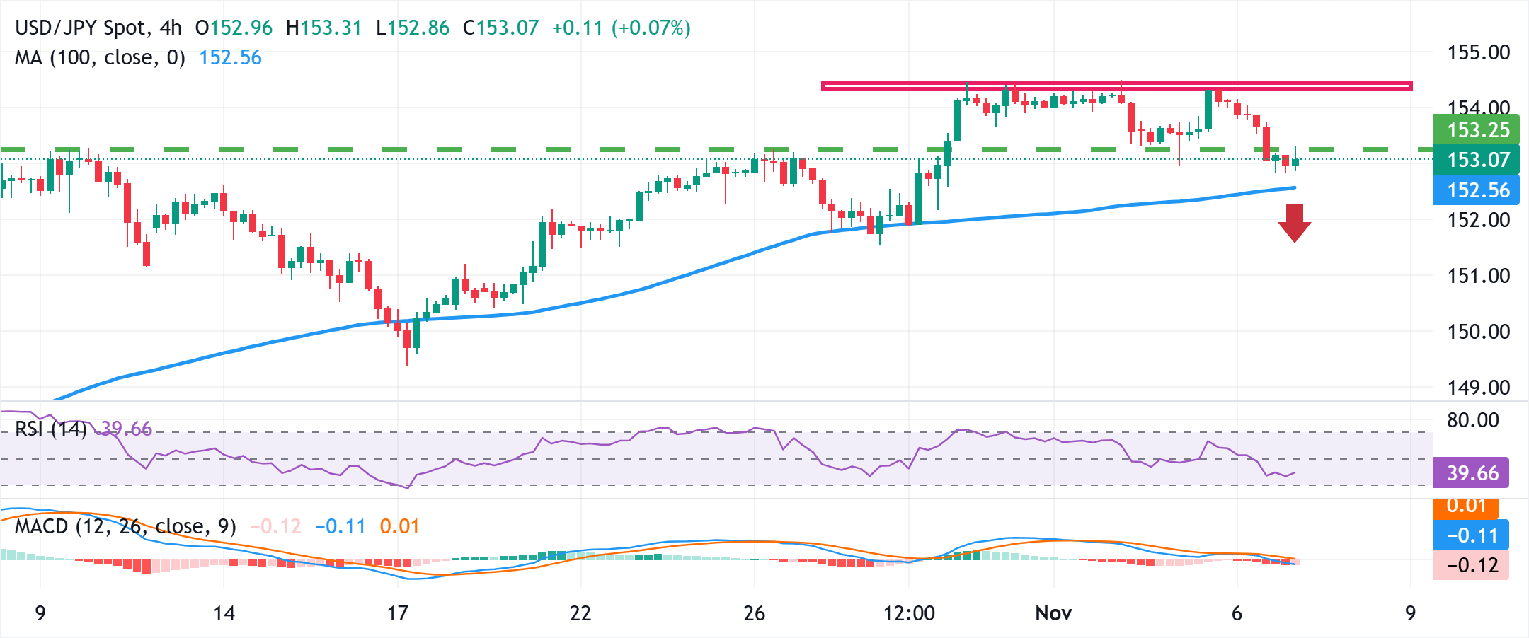 USD/JPY trở nên dễ bị tổn thương sau những lần thất bại liên tiếp gần đây gần vùng cung 154,45