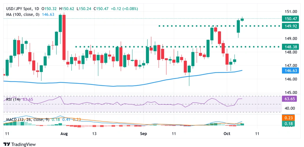 USD/JPY dường như sẽ tăng giá hơn nữa và kiểm tra mức cao nhất trong tháng 8, khoảng 151,00
