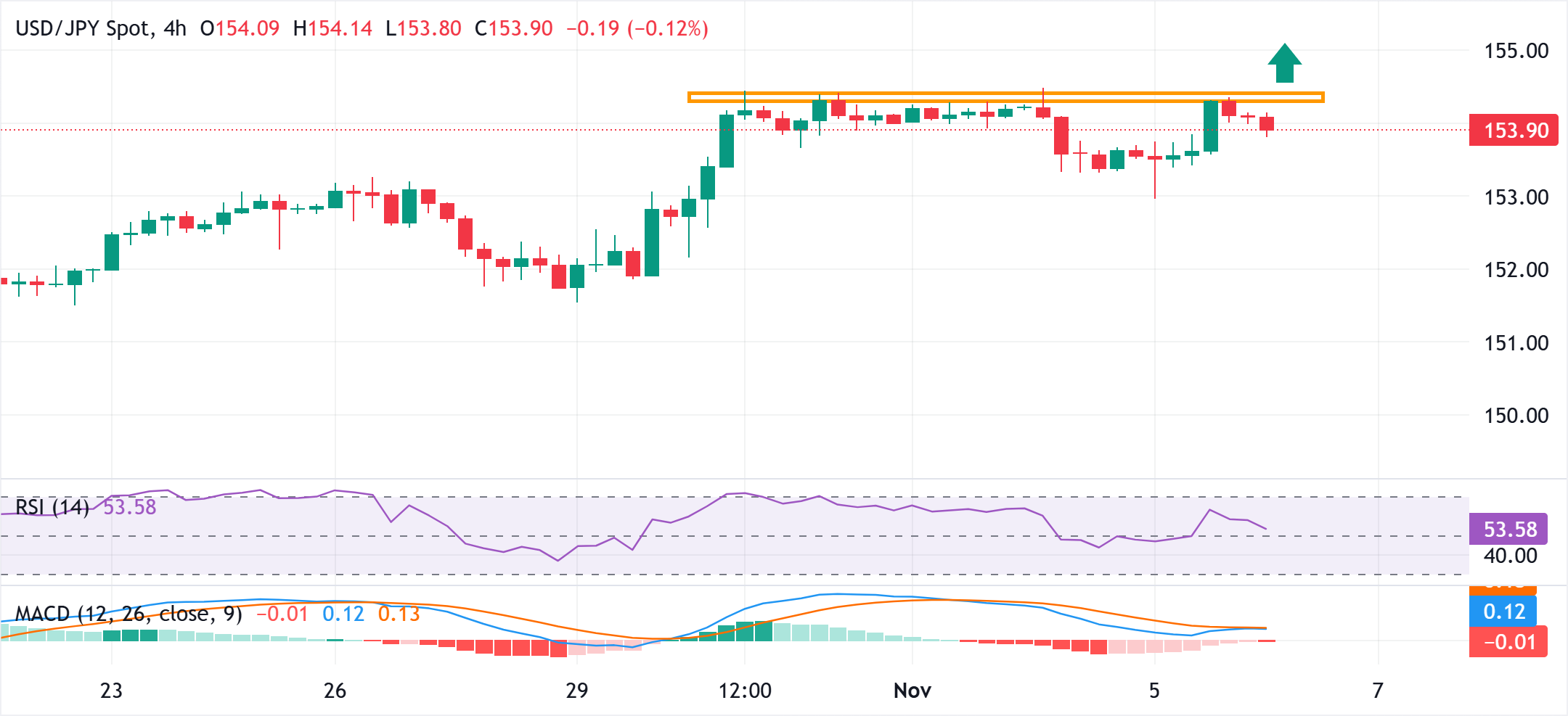 Những người đầu cơ USD/JPY hiện có thể chờ đợi một động thái bền vững vượt qua rào cản ngang 154,45