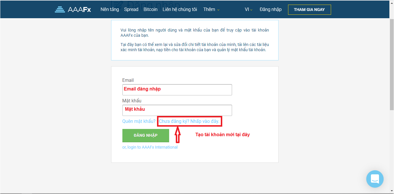 Bước 2: Đăng nhập vào AAAFx