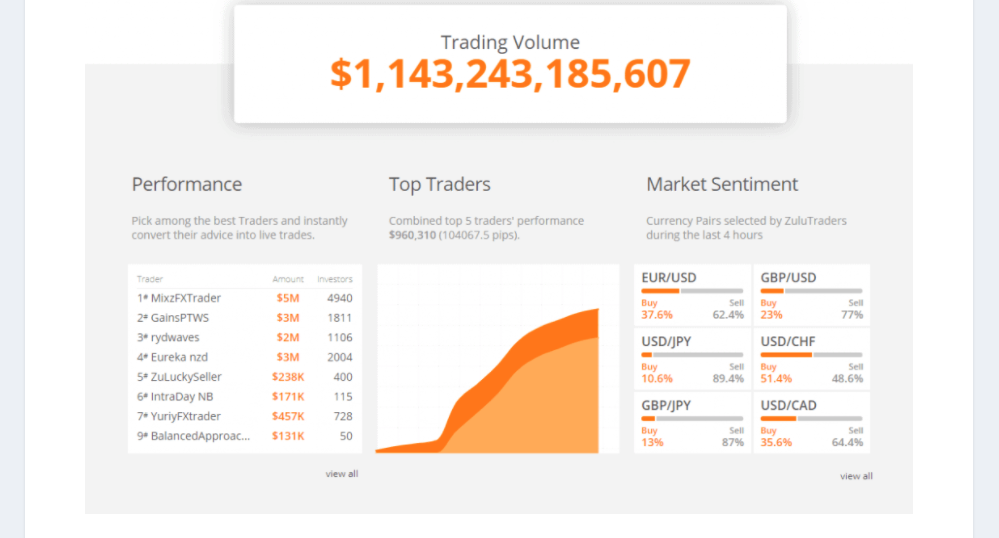 ZuluTrade đã trở thành một trong những sàn giao dịch copy trading và nhà cung cấp tín hiệu lớn nhất trong lĩnh vực này, một phần nhờ vào phạm vi các tính năng mà họ cung cấp cho cả trader và phạm vi nhà cung cấp tín hiệu ngày càng mở rộng.