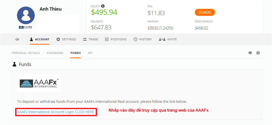 Sau khi đăng nhập tại AAAFx , bạn chọn nạp tiền.