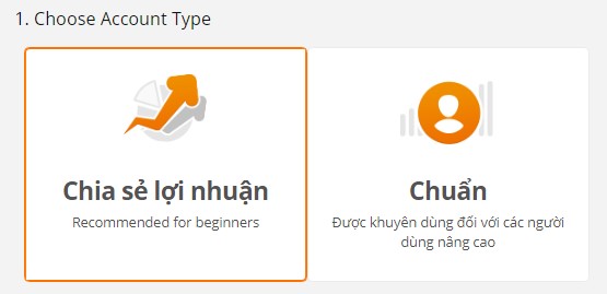 Bước 2: Chọn loại tài khoản phù hợp với bạn